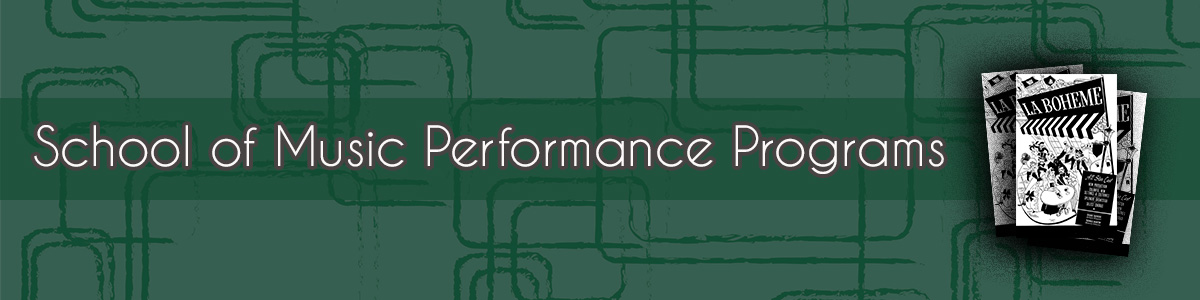 This collection will contain programs from performances given by the students and faculty of the School of Music from the 1950s to the present. The items in this collection are keyword searchable.