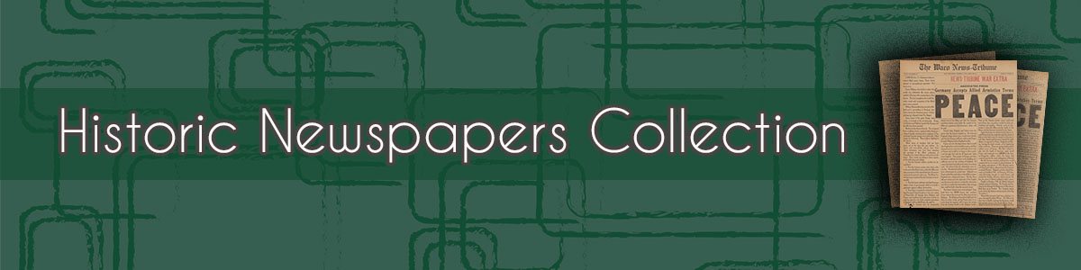 This collection contains historic newspapers drawn from holding institutions at Baylor University. Many were donated to the university's special collections as part of larger gifts and are too few in number to support creating an entire digital collection. This curated collection allows us to provide access to these resources without creating numerous smaller collections; therefore, the titles, eras and regions represented vary greatly from item to item.